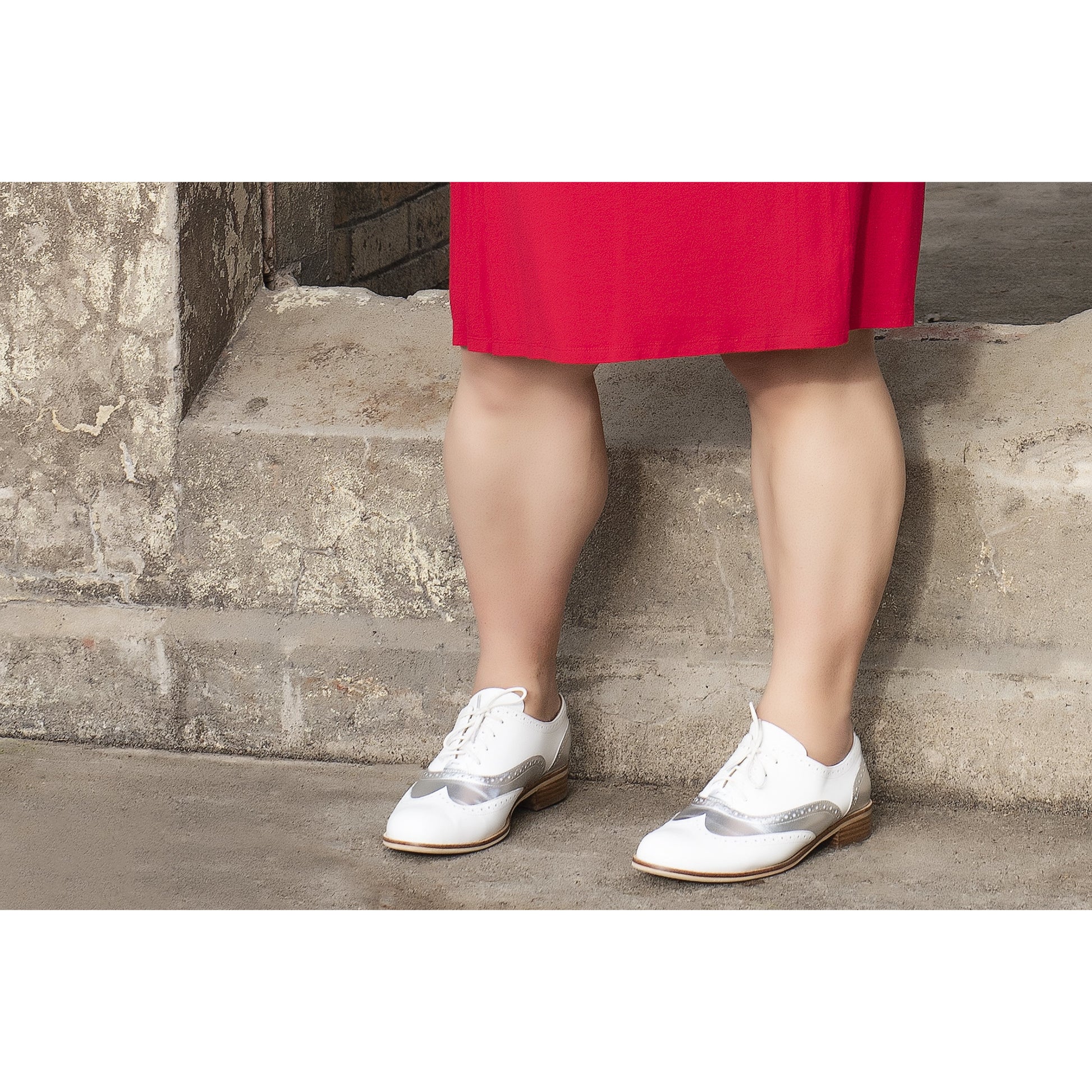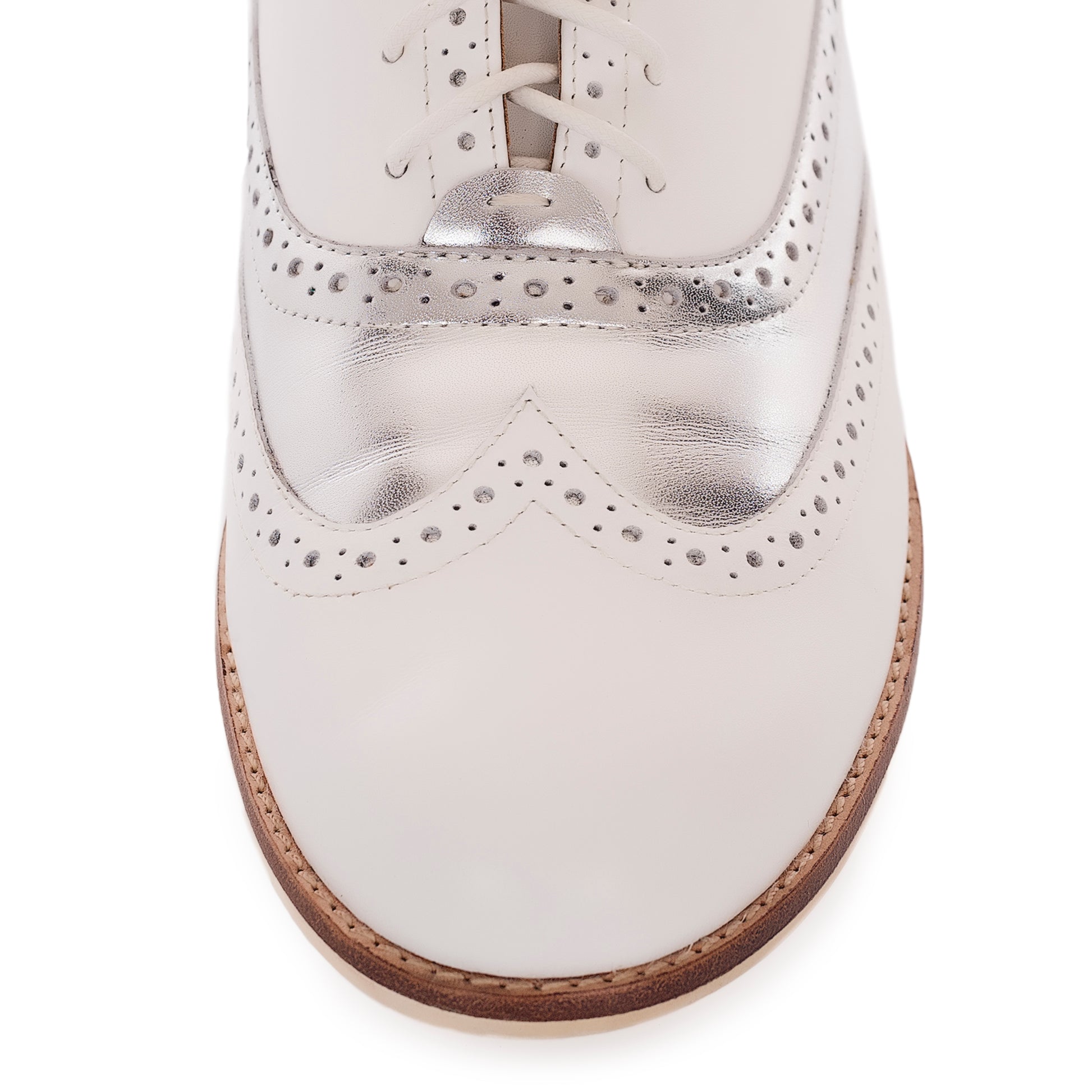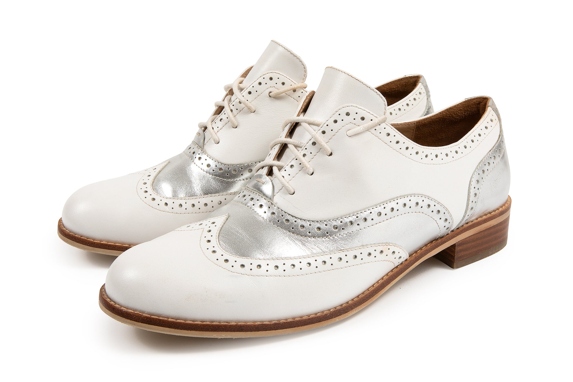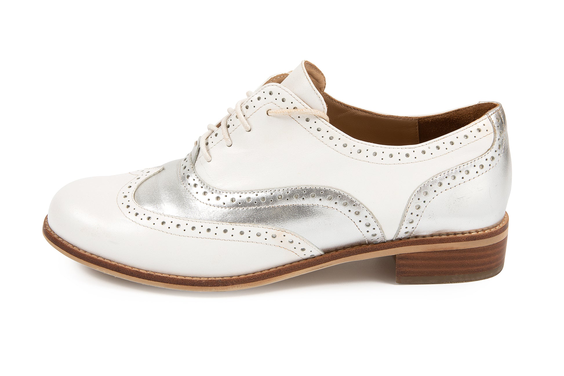 Upper - Two tone white & silver leather. Kid skin lining. Very soft feel on your foot.