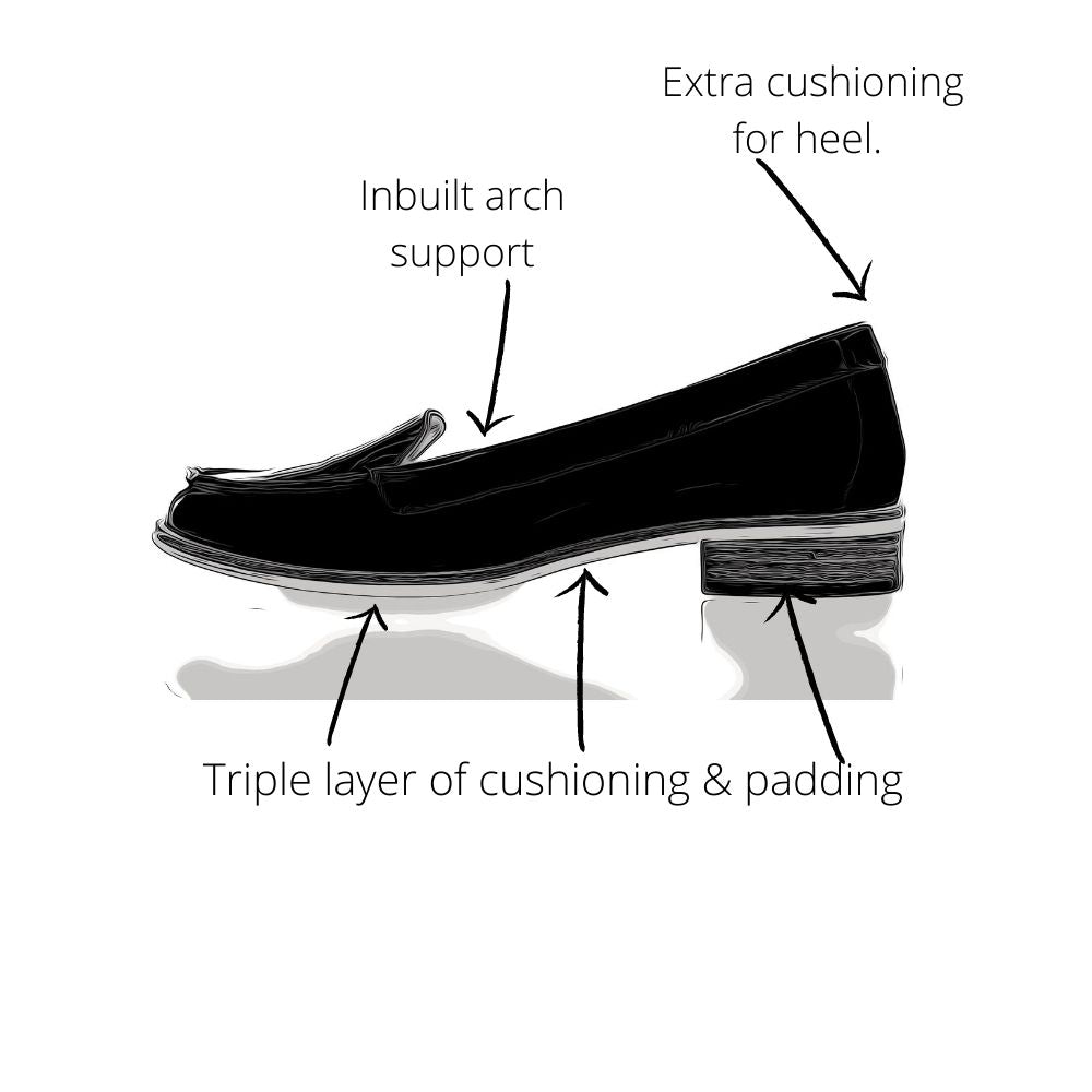 Footbed - Triple layer padding system with extra support on the ball of your foot & your heel. Super comfy. Inbuilt heel grip.